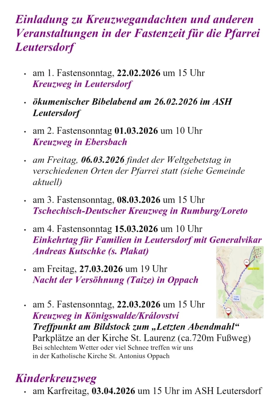 Kommende Veranstaltungen in unserer Pfarrei